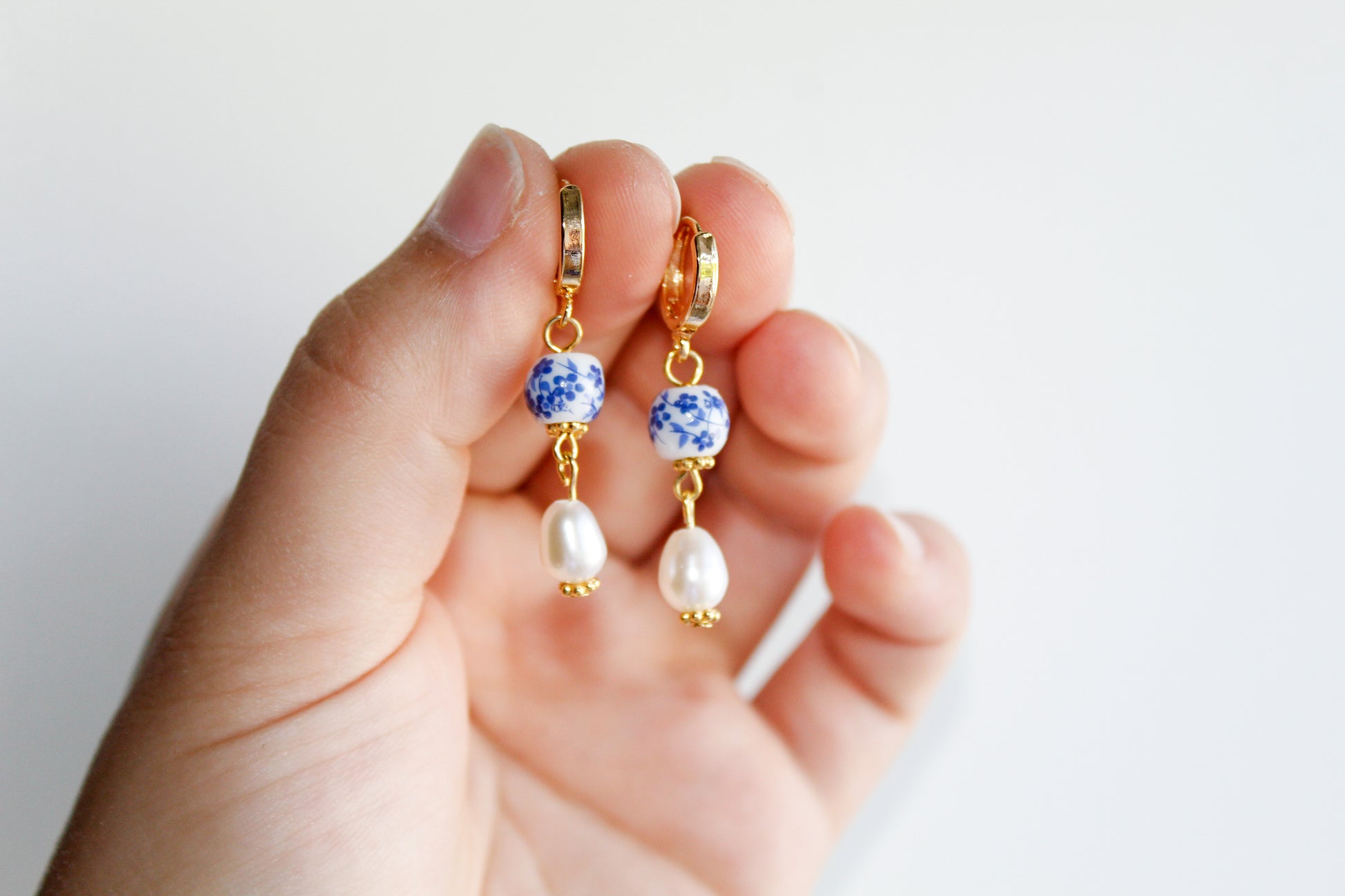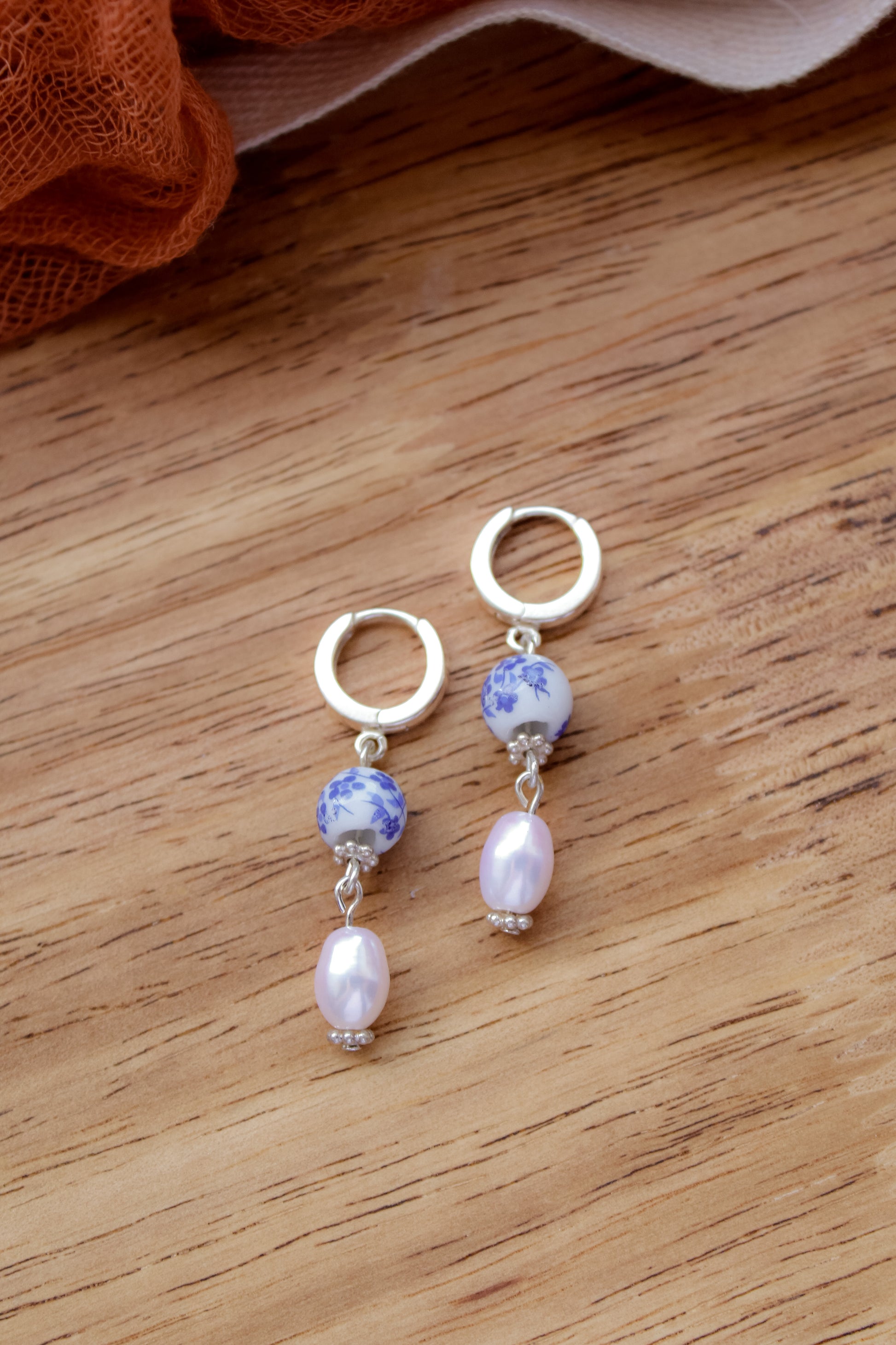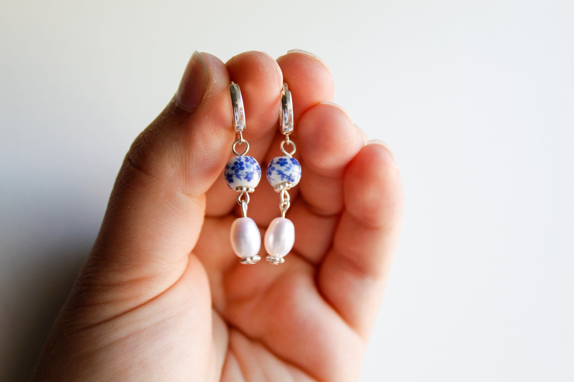 Made from .925 sterling silver, or 14k gold-fill, freshwater pearls, and painted porcelain beads.