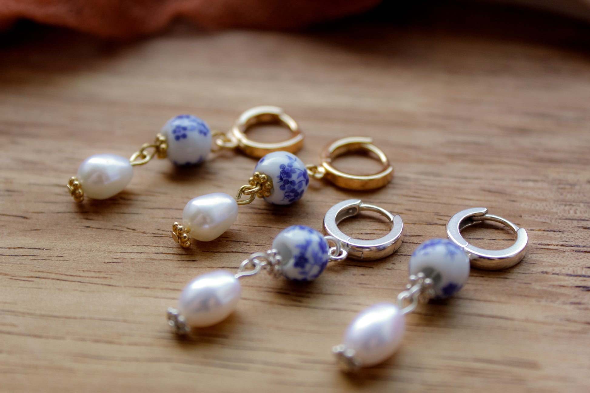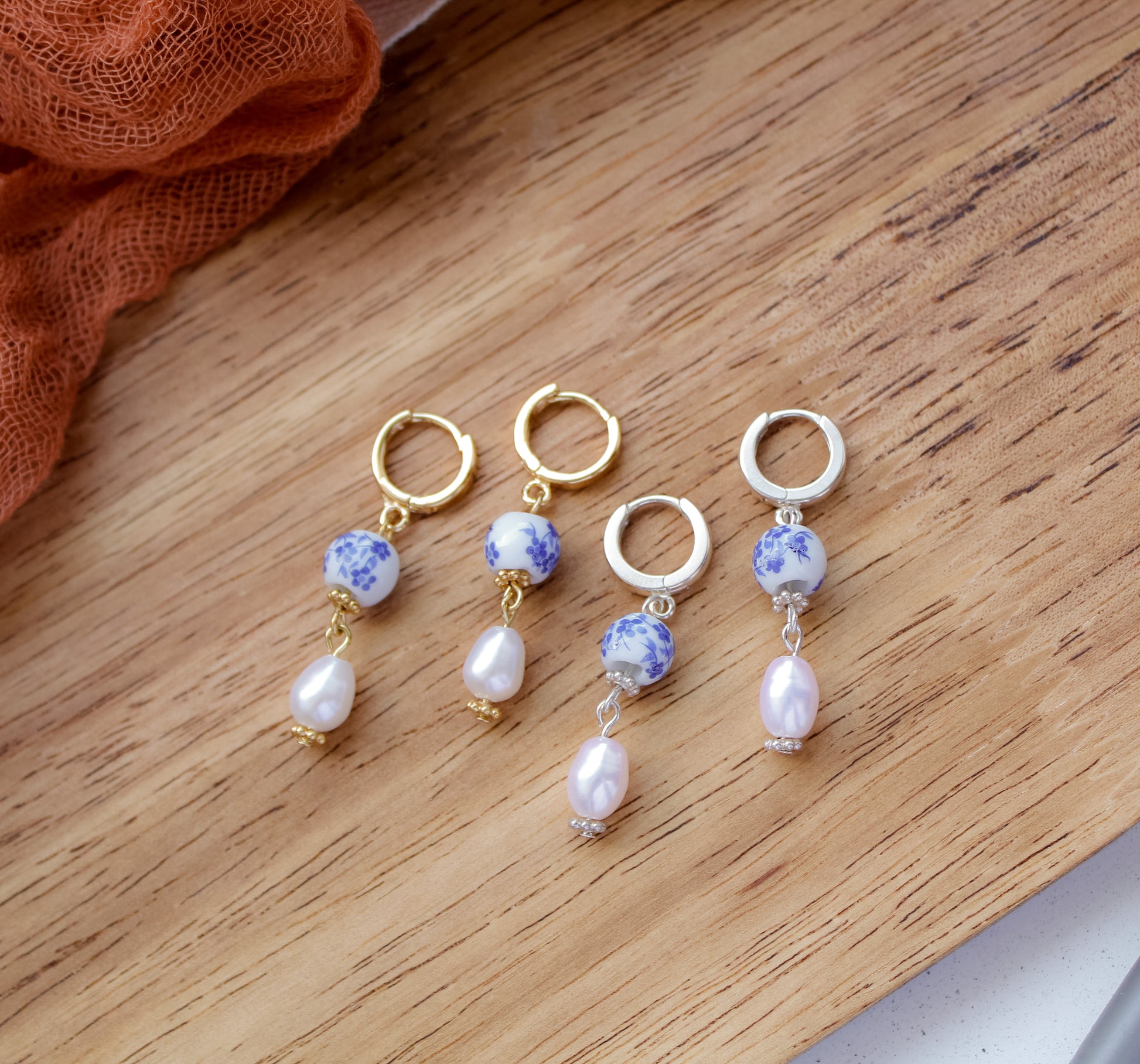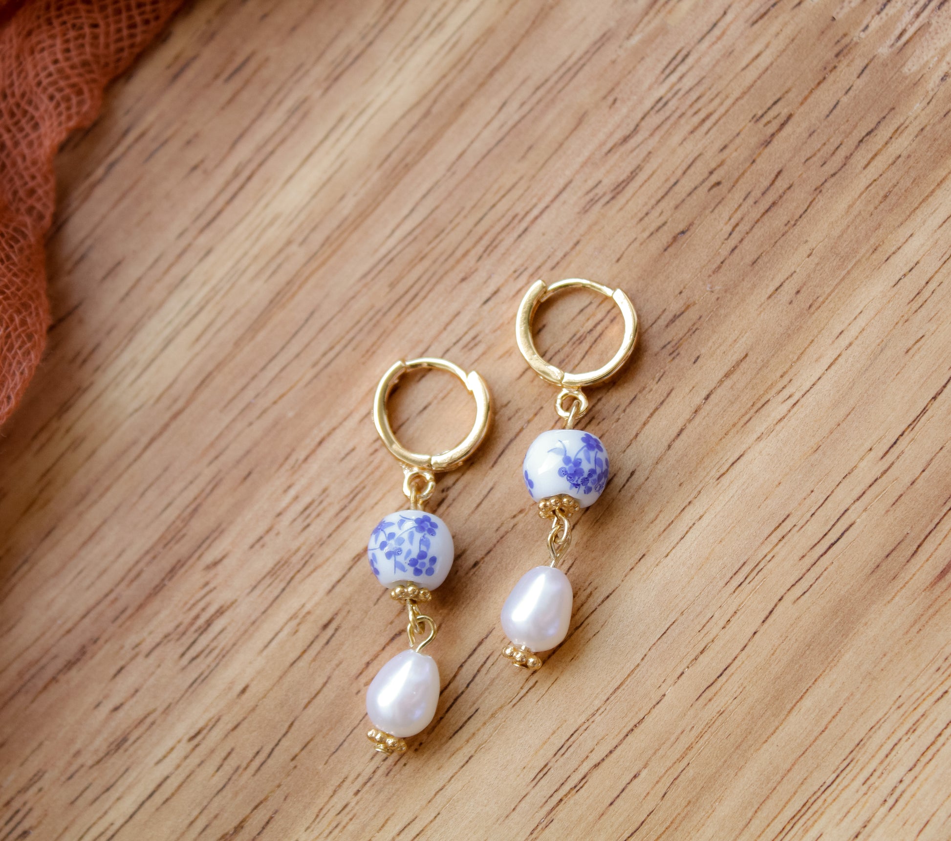 Made from .925 sterling silver, or 14k gold-fill, freshwater pearls, and painted porcelain beads.