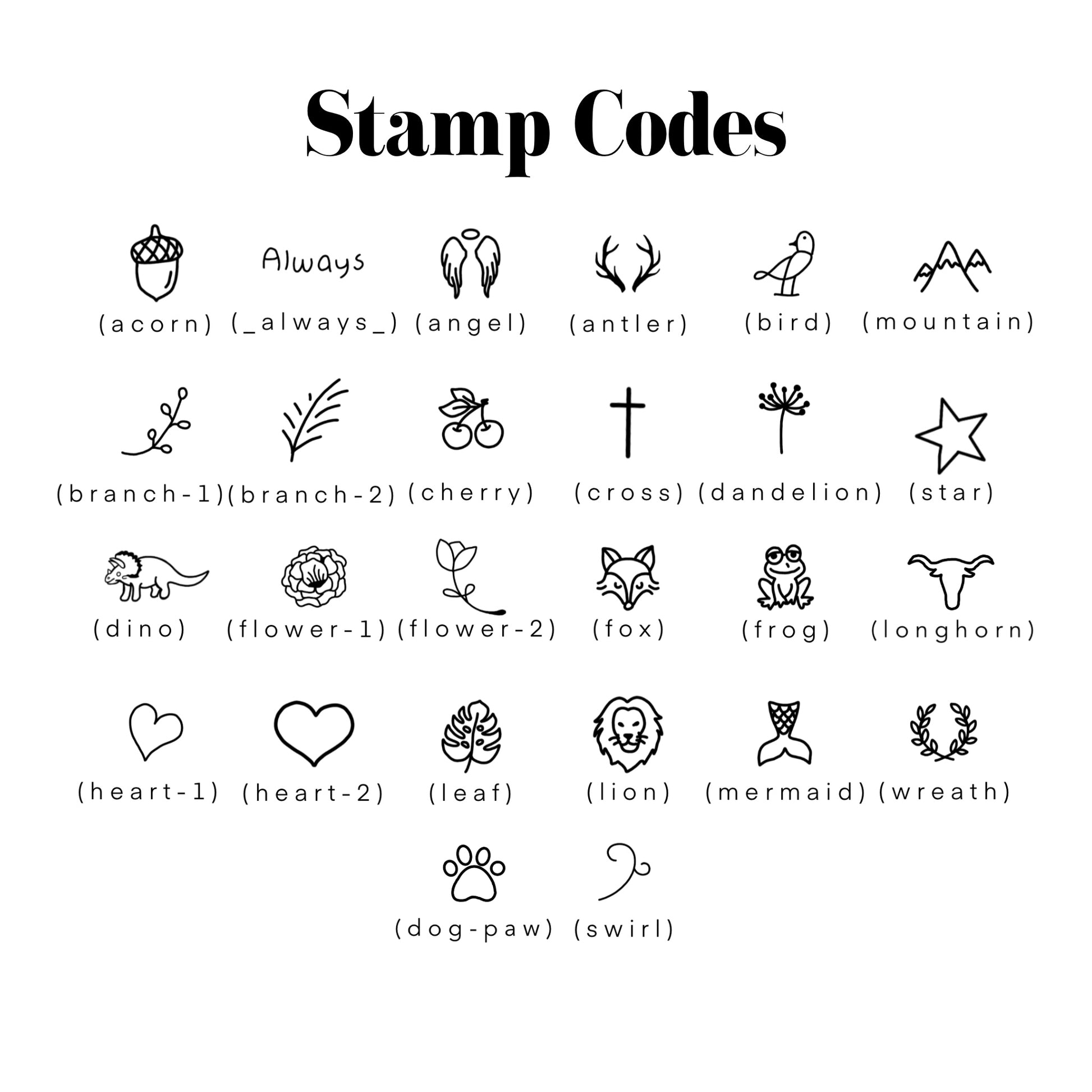 If you desire to have one of the image stamps on your jewelry, type in the text box the stamp code (image 2) of your desired image in the spot you would like it.