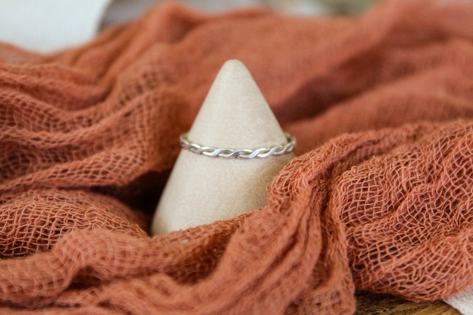Flat twisted Silver Stackable Ring
