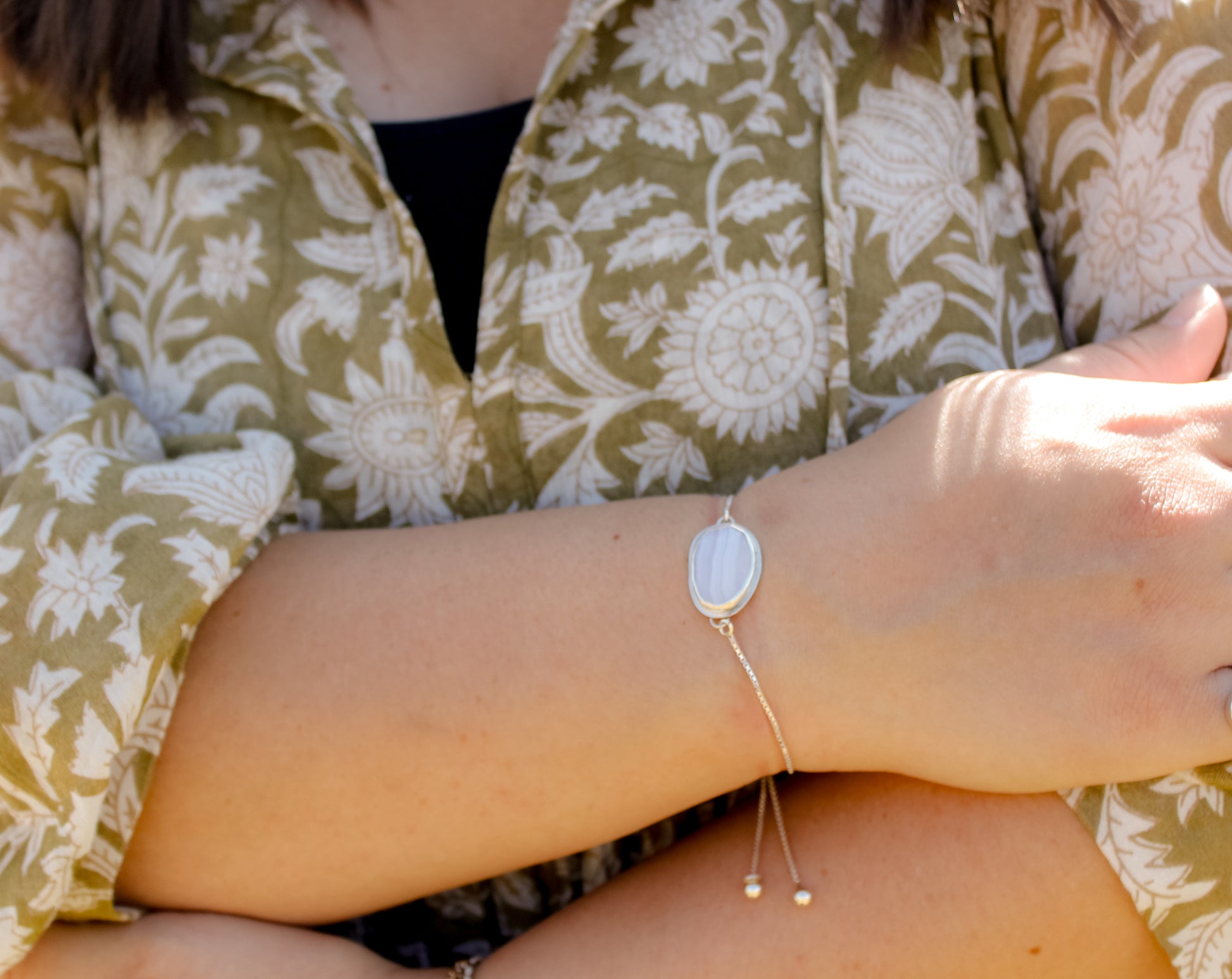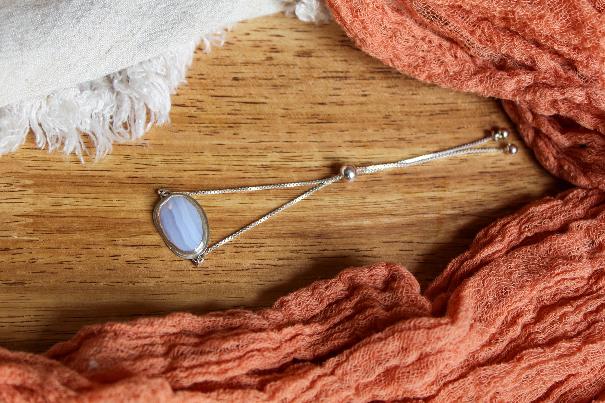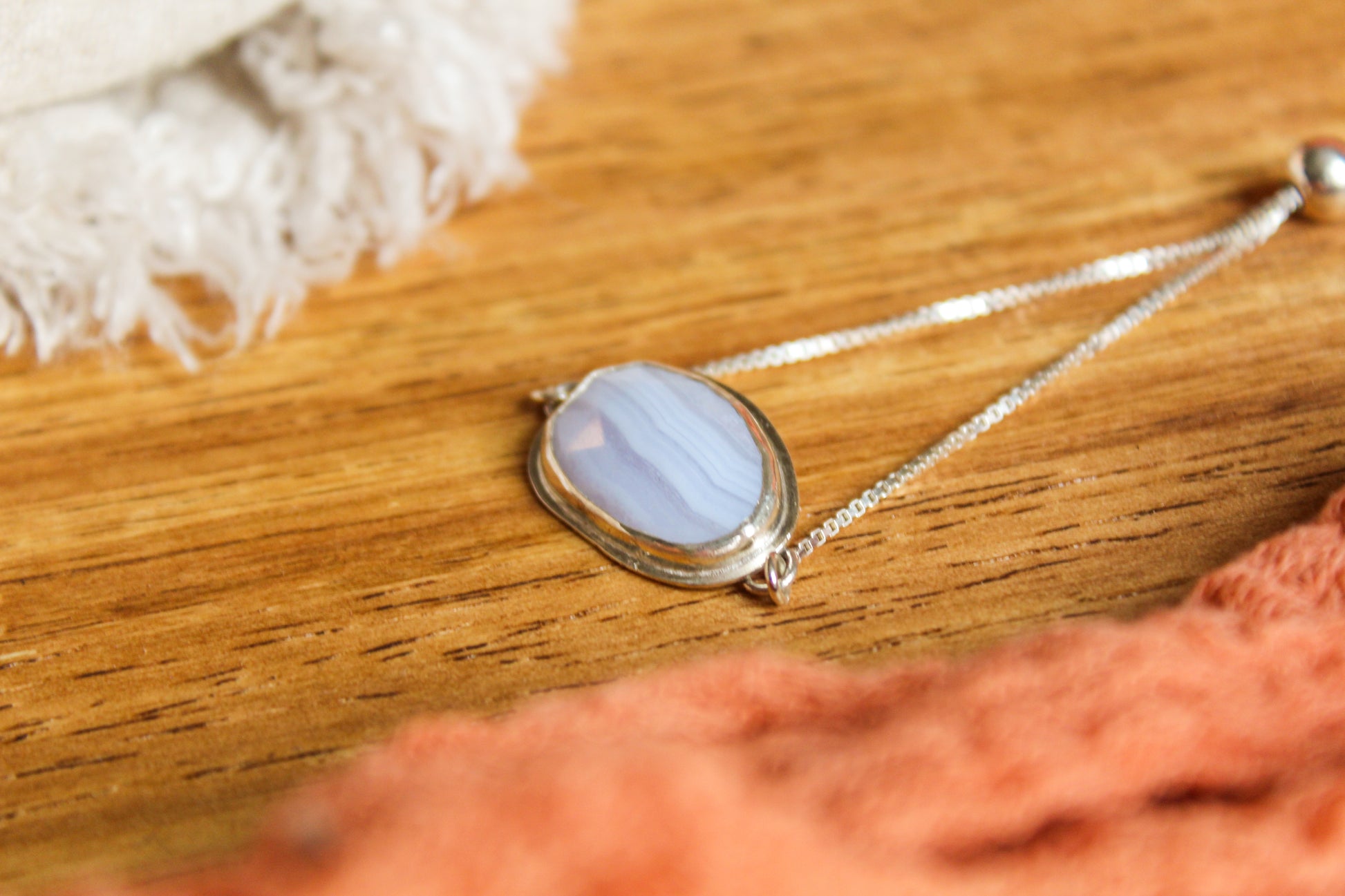 Made from .925 sterling silver, stone is Blue Lace Agate